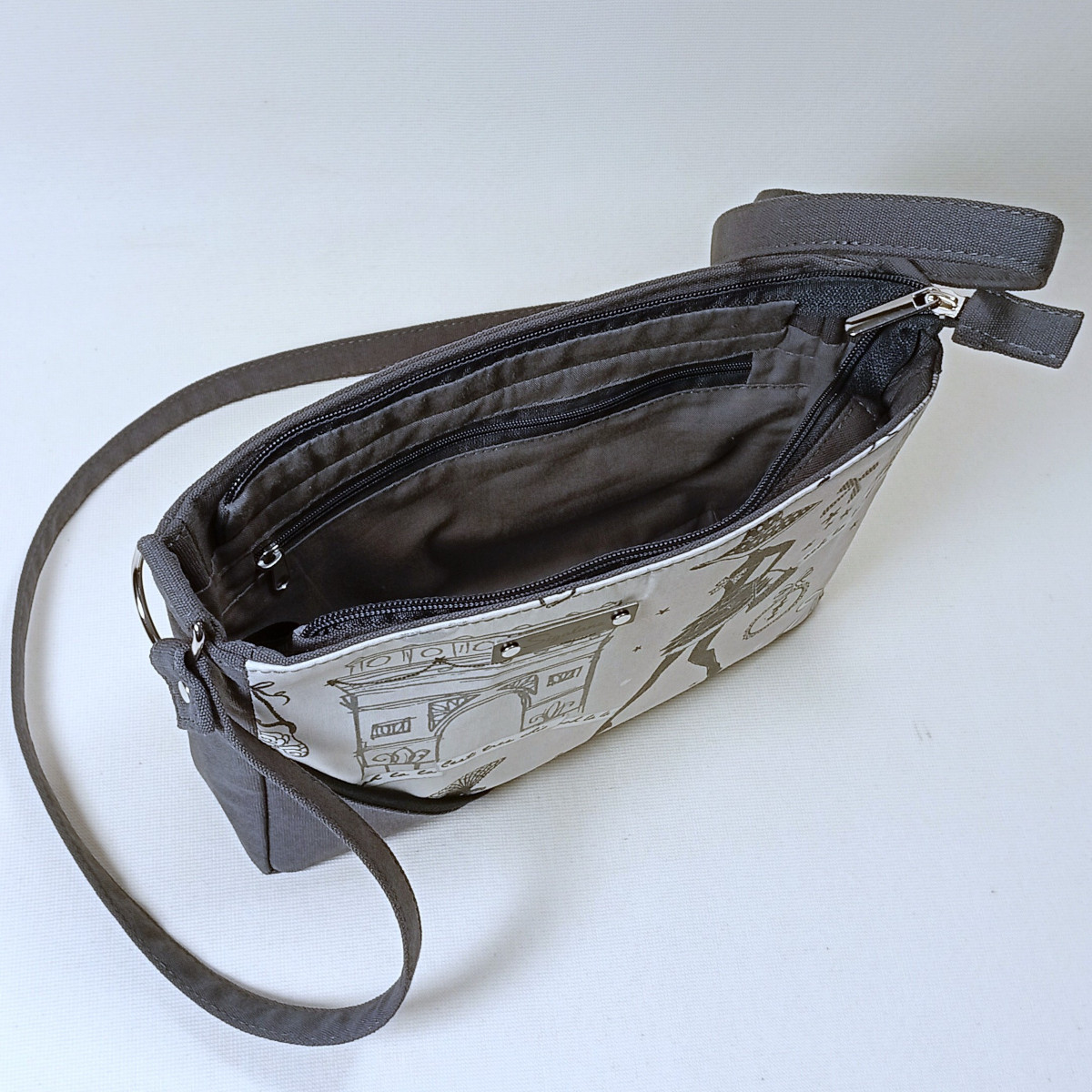 Dans un angle un triangle gris est souligné d’un liseret noir.